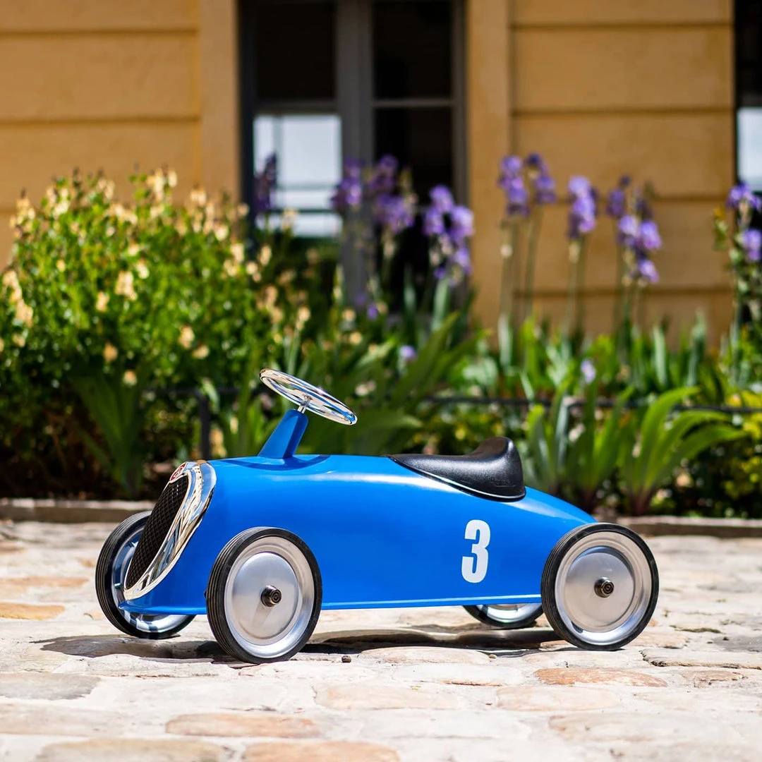 Baghera‘s beautiful vintage style Rider is the ultimate dream ride on-car for your mini motor enthuthiasts. With its shiny blue metal body and racer markings, it’s perfect for children 2 years + who love to adventure!