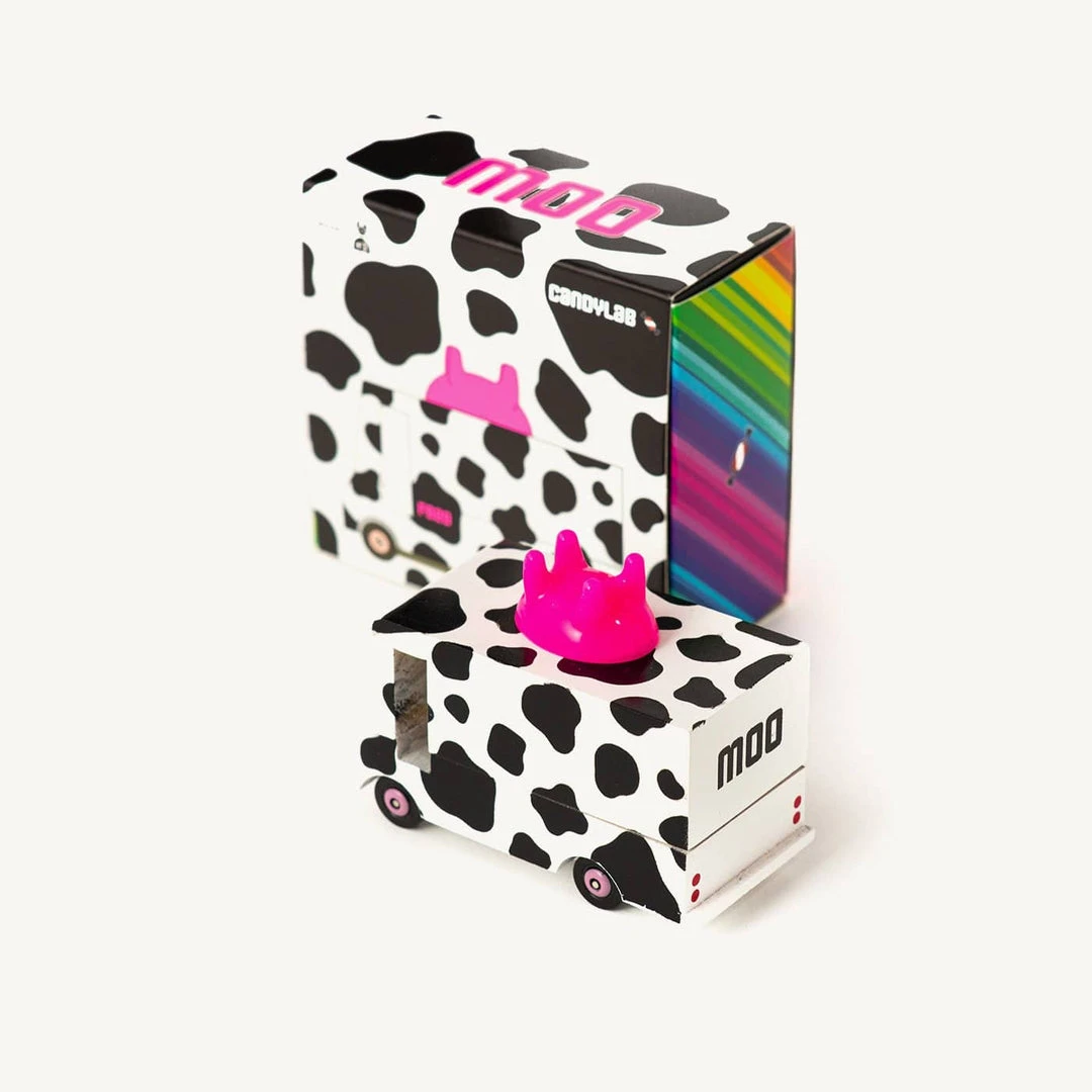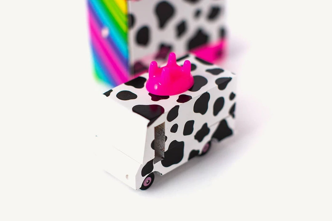 We think you’re going to be udderly impressed with Candylab’s black and white Milk Van which comes complete with a pink rubber udder topper.