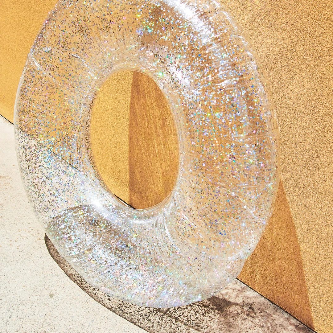 Pool Ring Glitter by Sunnylife. Float to Paradise and make the sunny season one to remember with Sunnylife’s Insta-famous Pool Ring Glitter. Perfect for those warm sunny days at the Pool or Beach, the Pool Ring Glitter is made from durable, non-toxic Phthalate free PVC. If you like summer than put a ring on it with a SUNNYLiFE Pool Ring.