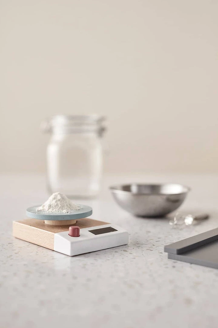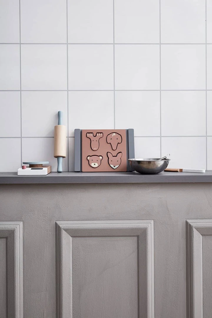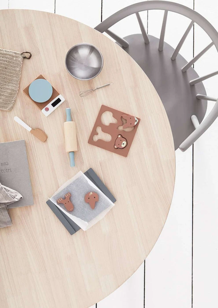 Wooden Toy Baking Set Set by Kids Concept. This gorgeous toy baking set has everything your aspiring little bakers need to bake their very own ginger bread shaped animals. Designed in Scandinavia and lovingly hand crafted in wood, it is guaranteed to be a hit with children who love role play in the kitchen and copying grownups baking.