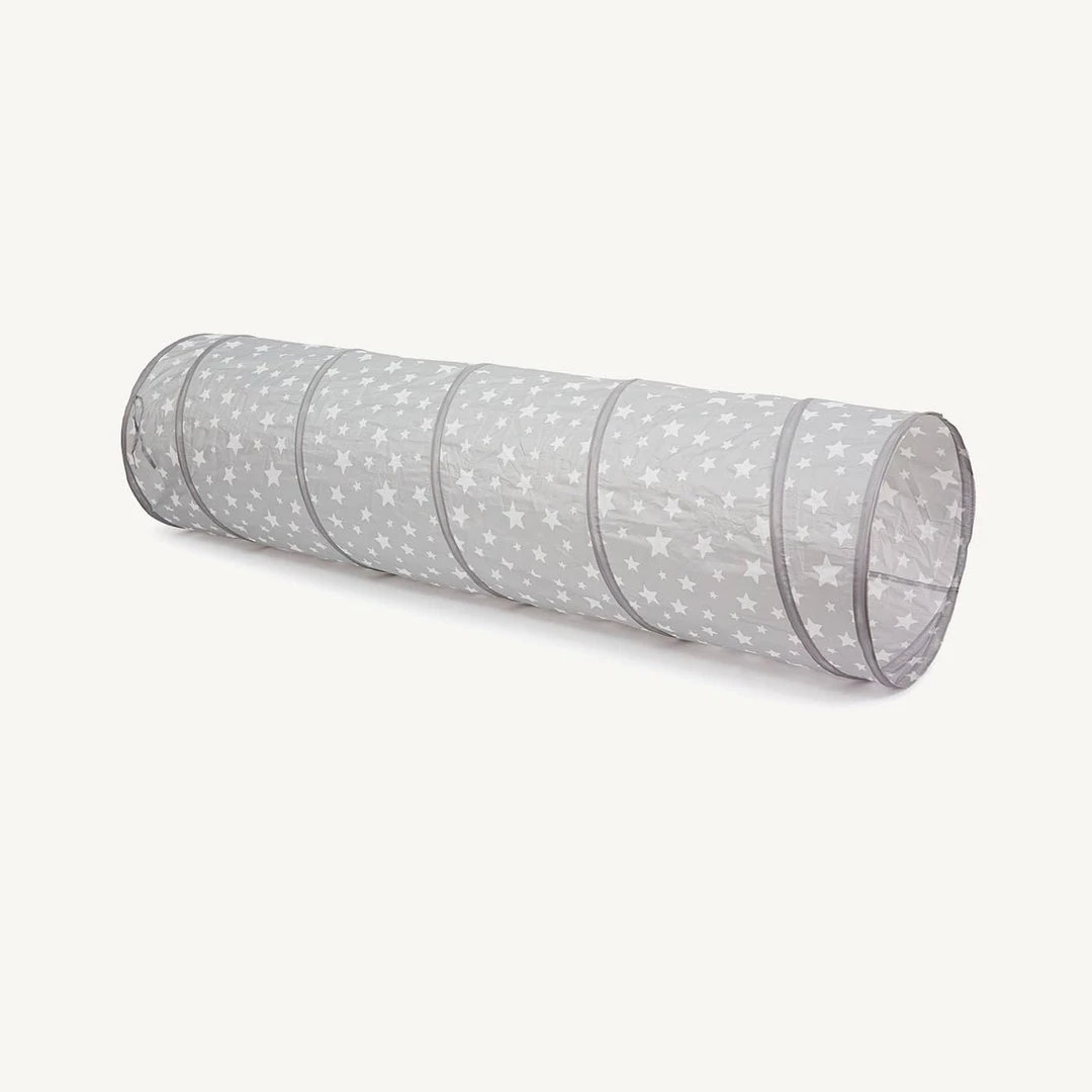 Star Grey Play Tunnels by Kid’s Concept. Our best selling Play Tunnels brilliant fun for little ones and the perfect match for our Star Grey Play Tents (as shown in the second image). Hide inside or crawl through and discover what awaits you on the other side. Or put it as an entrance to our play tents. It’s quick and easy to set up and and includes a handy carry case for storage and relocation.