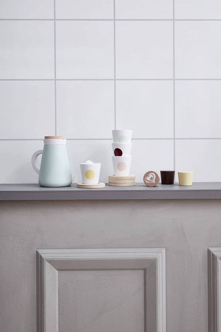 Designed in Scandinavia and lovingly handcrafted in wood, this coffee set is brilliant for pretend play and the perfect accompaniment to our Kids cafe range which includes Fika Cakes, cash register, play kitchen, coffee machine, cake stand, mixer set and much much more…