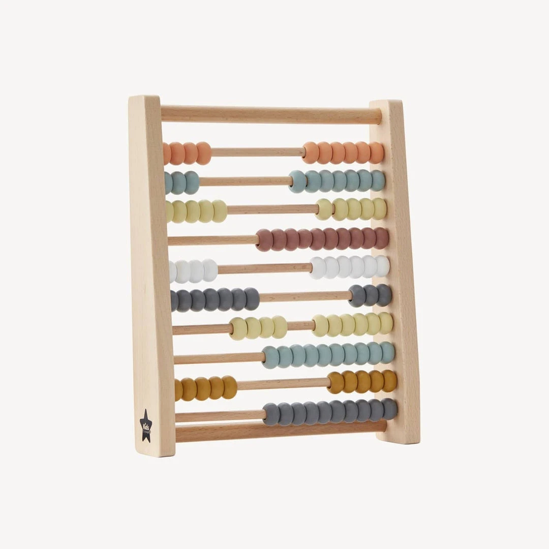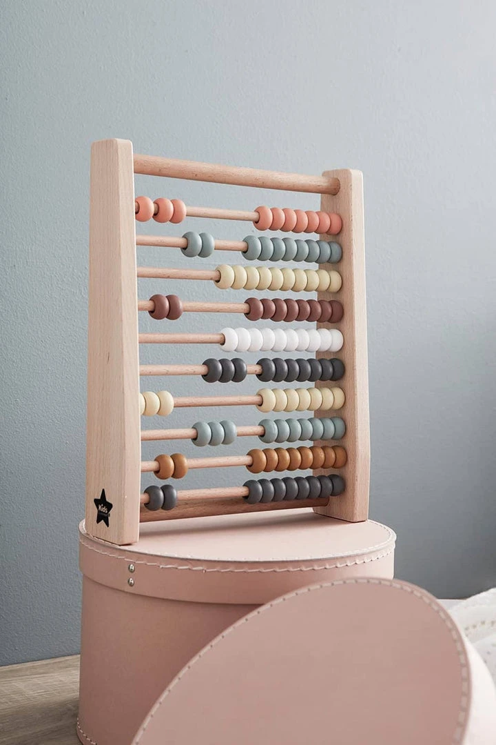 Neo Wooden Abacus by Kids Concept. A beautiful addition to the nursery, playroom, or just around the home. This lovely Wooden Abacus from the Neo range makes learning maths fun and helps your child develop skills in recognising patterns and colours, while honing fine motor skills. Finished in natural wood and earthy colours, it is handcrafted, hand painted and designed with typical Scandi Style.