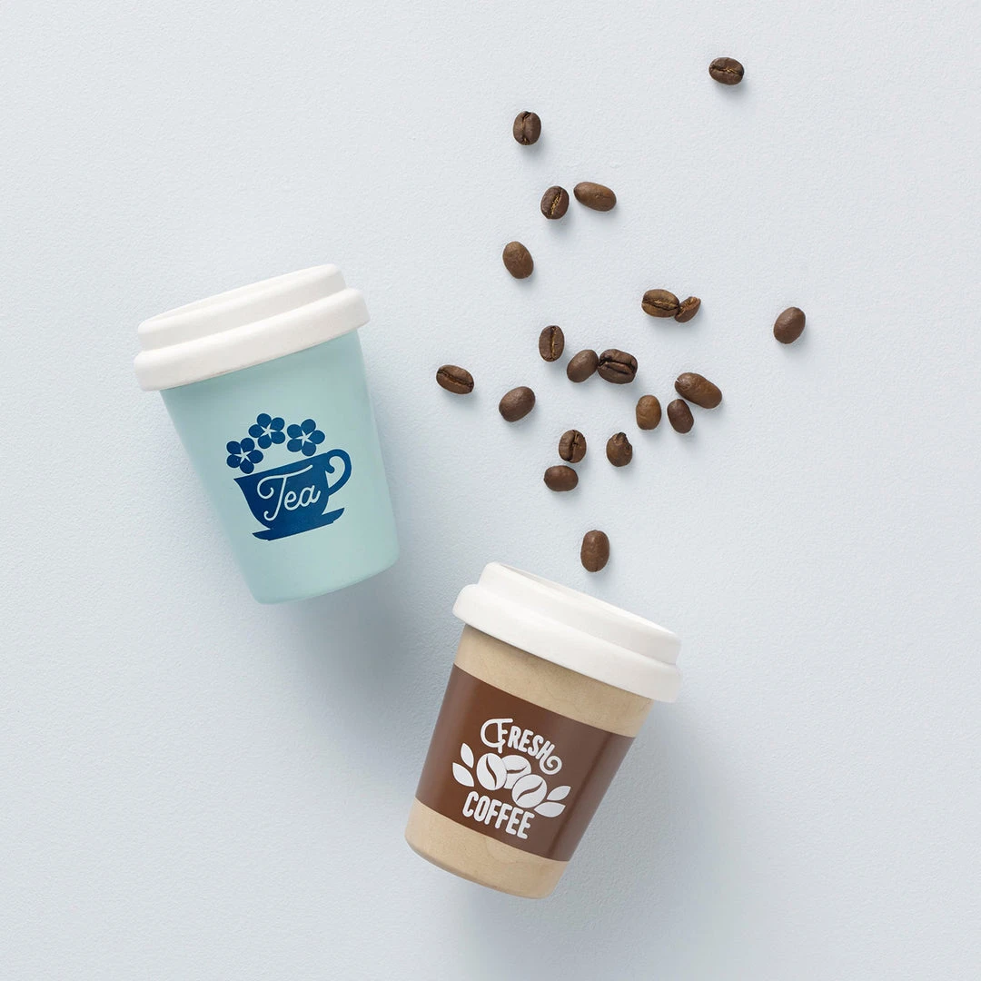 Honeybake Take Away Drinks by Le Toy Van. A pair of hot take away drinks – a tea and a coffee. This set is wonderfully versatile, with a gender-neutral design scaled perfectly to the extensive Le Toy Van Honeybake role-play collection. Plastic free, ethically made from sustainable wood and decorated in safe, water-based paints, this lovely play set a fantastic addition to our Le Toy Van Honeybake collection.