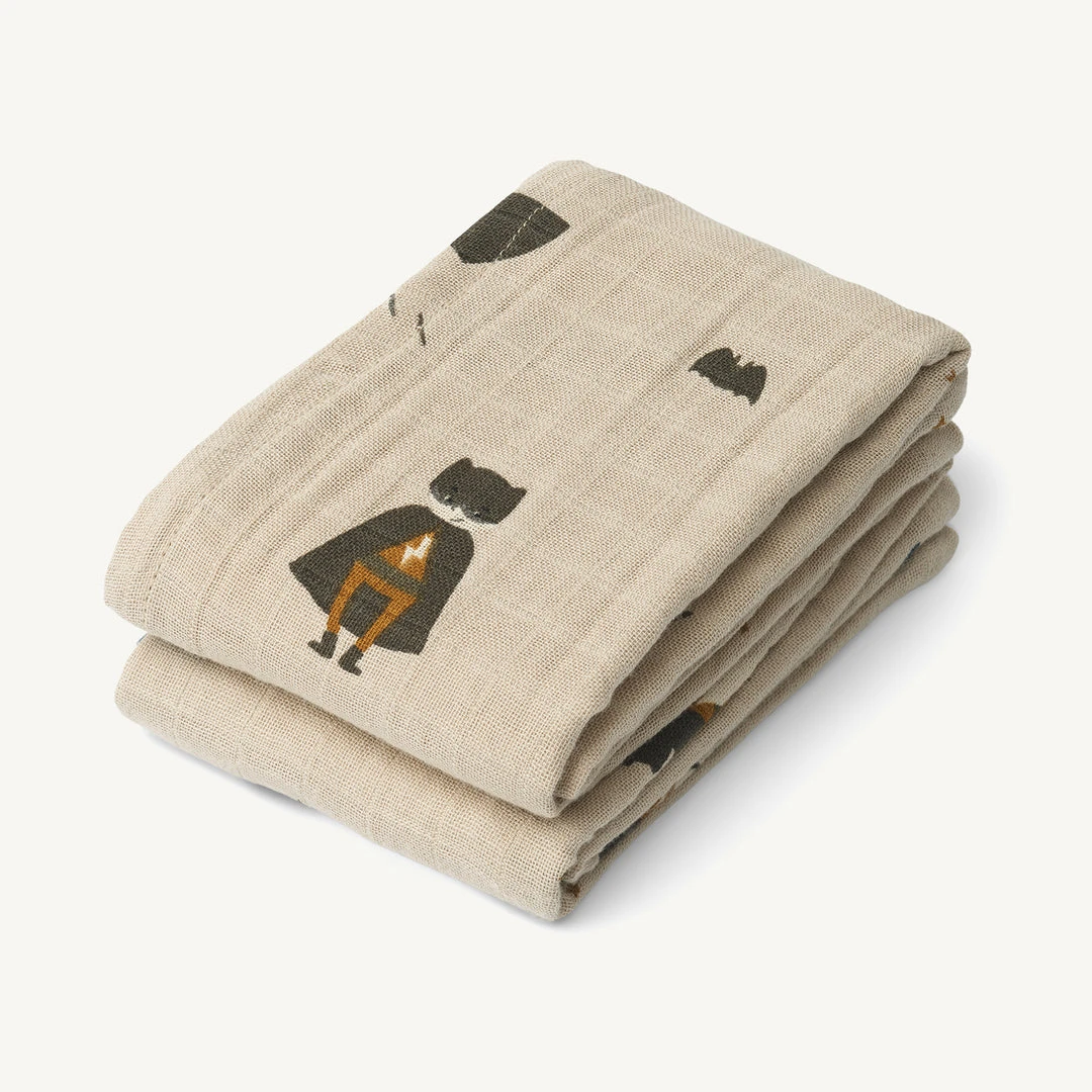 Lewis Organic Cotton Muslin Cloth 2-Pack – Superhero / Dune Mix by Liewood. Made from the highest quality, premium staple organic cotton yarn and perfect for a myriad of uses from swaddling to breastfeeding.