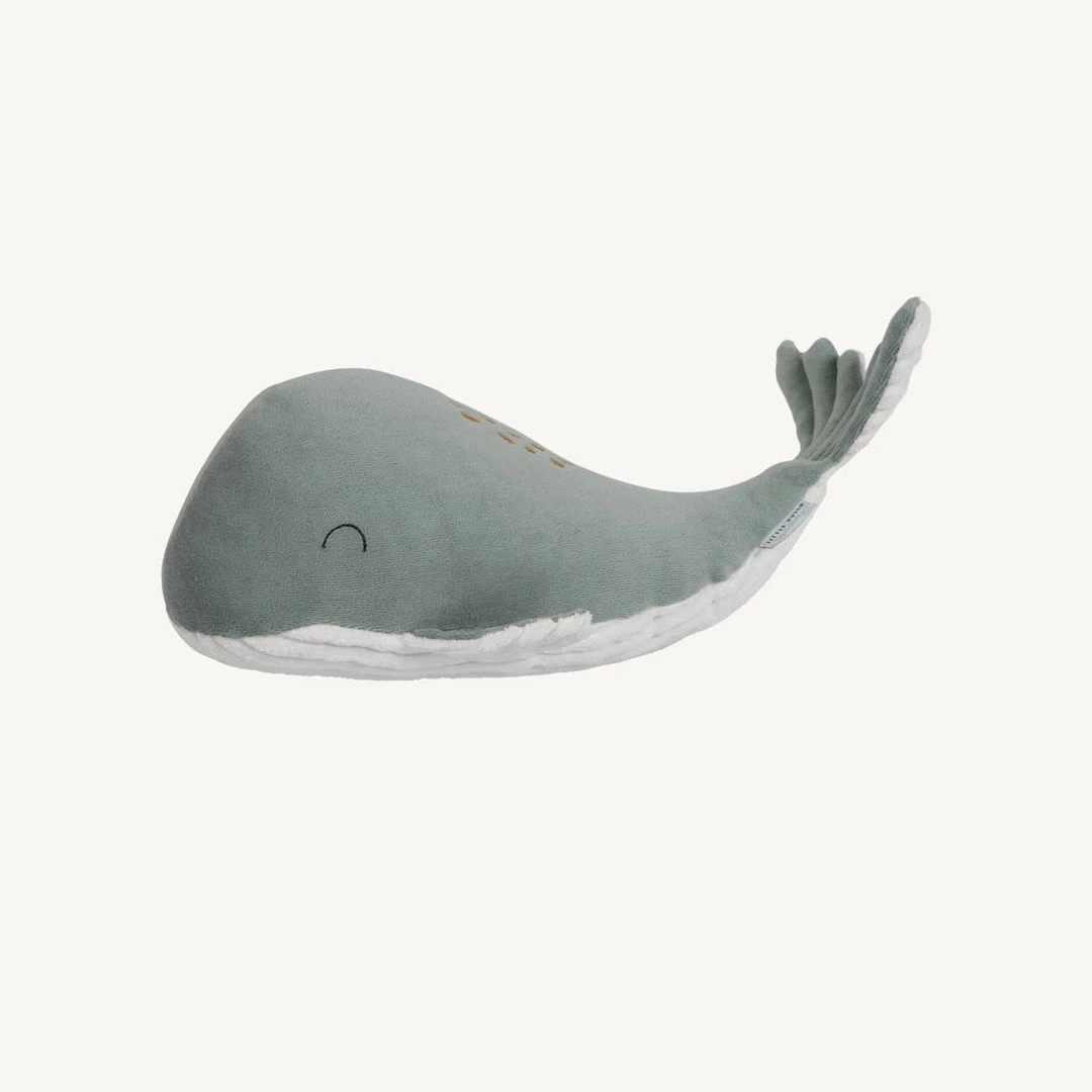 Large Cuddle Toy Whale by Little Dutch. Who doesn’t want to cuddle with a whale? He loves it when you wiggle his tail! This Little Dutch cuddly toy is approximately 35 cm long and wonderfully soft. The fabric offers different textures that have a great feel to them. The whale makes a nice nursery accessory, but most of all he wants to cuddle with you.