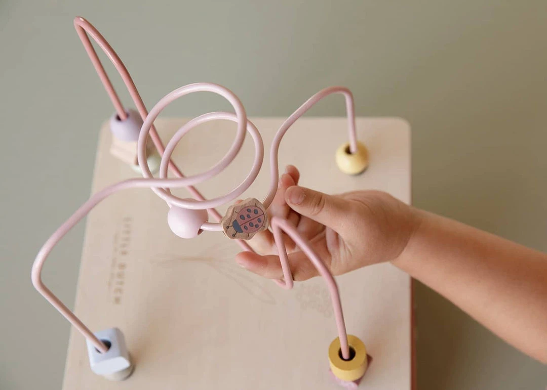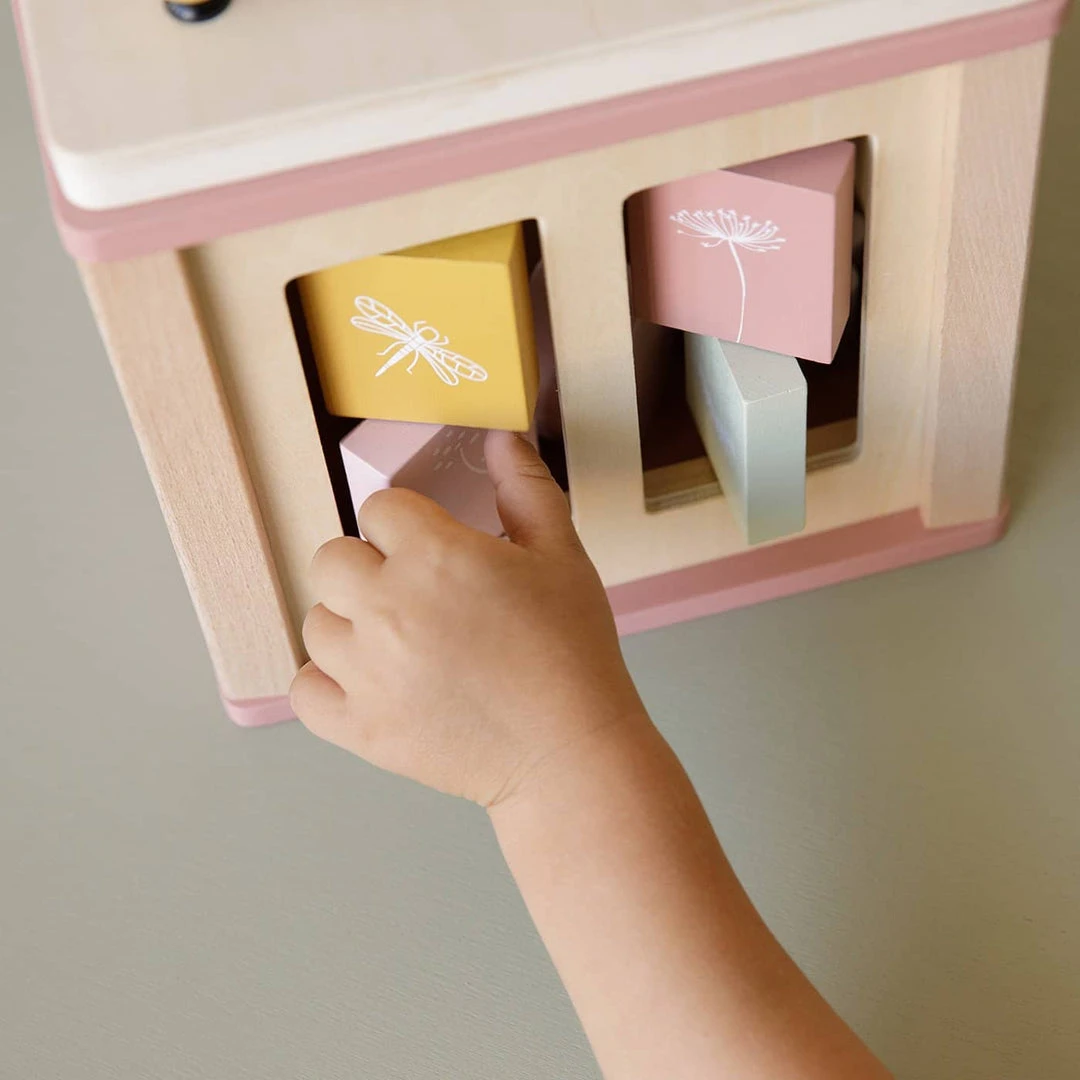 Wooden Activity Cube Wild Flowers by Little Dutch. This wooden activity cube provides plenty of challenges for children. Each side features wonderful Wild Flowers illustrations and offers a different educational activity, including a shape sorter, turning gears, puzzles and a fun bead spiral on top. With each activity, children develop their fine motor skills and are encouraged to use their creativity. This toy captivates children’s curiosity and brings lots of fun.