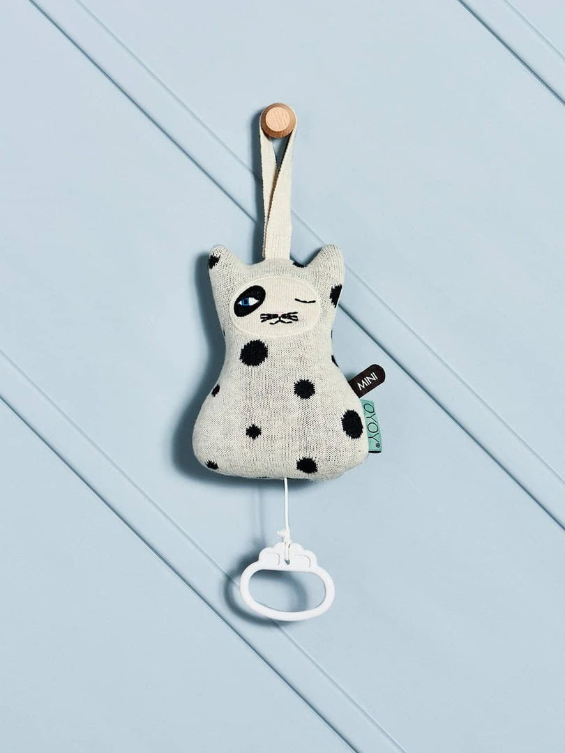 Cat Music Mobile by OYOY. The adorable OYOY Cat Music mobile is a gorgeous accessory for your child’s nursery. Made from 100% cotton with polyester padding, the cute little character plays soothing music to help settle your baby to sleep.