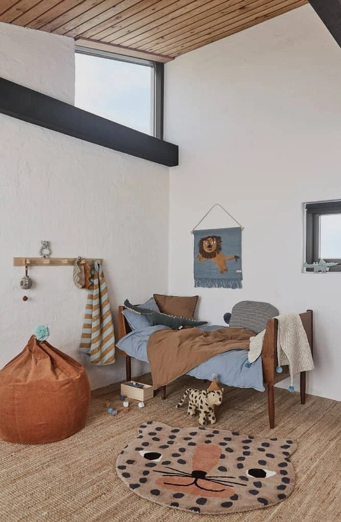 Leopard Rug by OIOI. This beautiful Leopard rug will add warmth and fun to your child’s play room or bedroom. Little ones love the eye catching playful design and friendly Leopard face which really brings a room to life. Whether sitting or laying down, these super soft rugs provide a comfy place to play and rest.