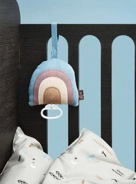 Rainbow Music Mobile by OYOY. The Rainbow Music Mobile is an adorable accessory for your child’s nursery. The soothing lullaby helps to settle your baby to sleep and keeps them happy during nappy changes and when you’re out and about in the stroller or car seat.