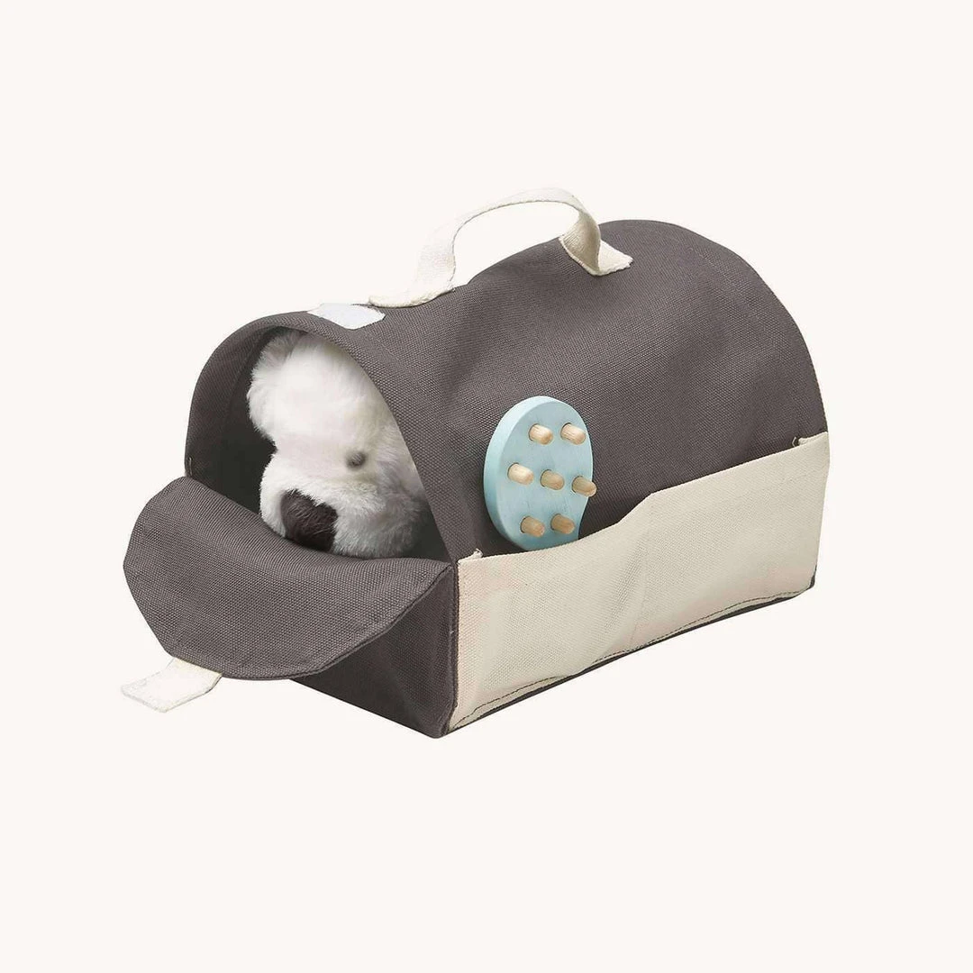 Plan Toys Pet Care Set. Encourage their love of caring for animals with this cute pretend Pet Care Set. The set includes all the tools and accessories they need to look after their favourite toy pets, just like they would with a real pet – brush, play ball, feeding bowl with food, collar, accessory bag and fabric pet carrying crate