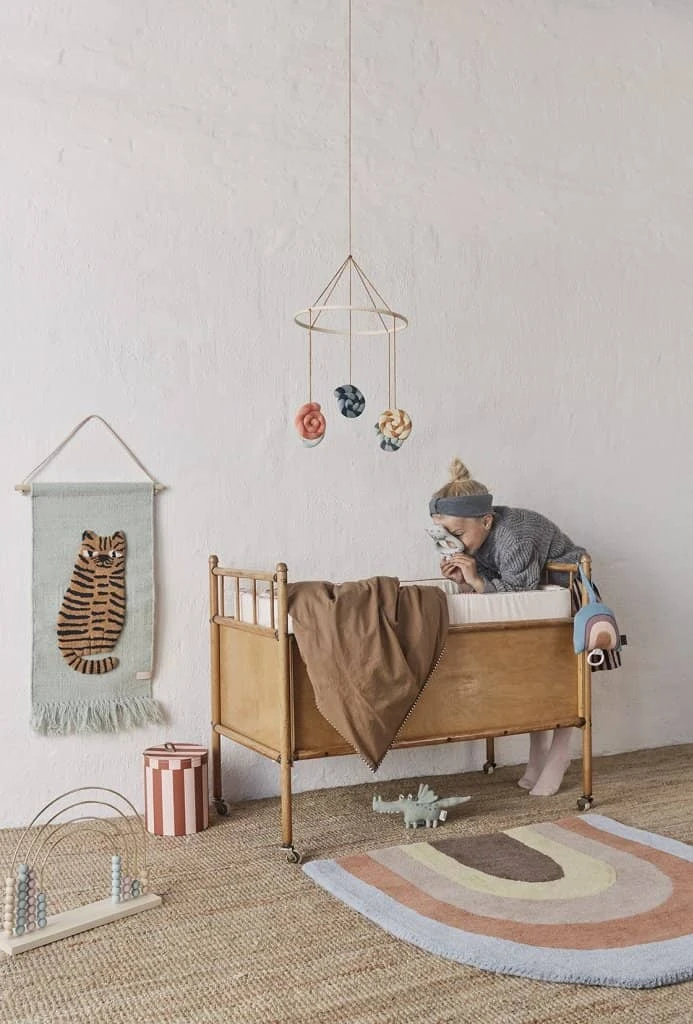 Tiger Wallhanger by OIOI. This beautiful Tiger Wallhanger is a lovely decorative piece for your child’s play room or bedroom. The playful collection which also includes a Lion and Giraffe make a beautiful eye catching feature whether hung individually or grouped together. The soft muted colours blend beautifully in the home, giving it a lovely warm feeling, perfect for animal themed rooms and mixing other animal accessories!