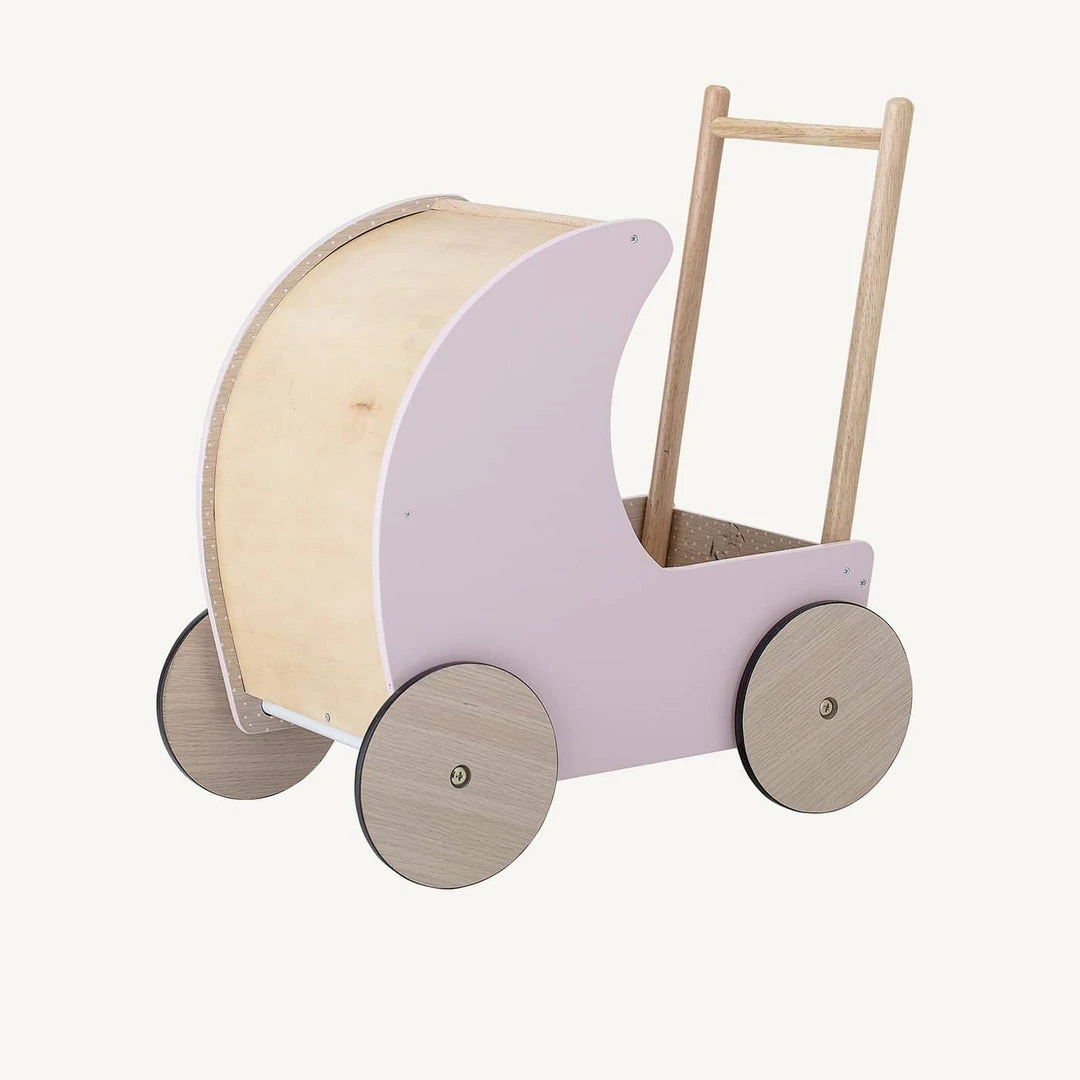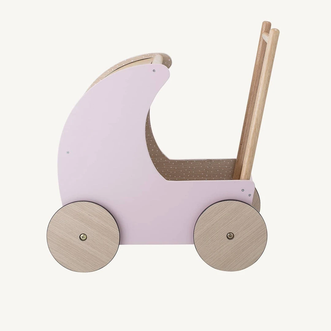 Wooden Dolls Pram in Pink by Bloomingville. This beautiful wooden dolls pram is the lovely addition to the play room and perfect for little ones who love playing with dolls and teddies. Not only does it look pretty but it’s built to last and the strong and sturdy design is great for helping new walkers stay steady on their feet.