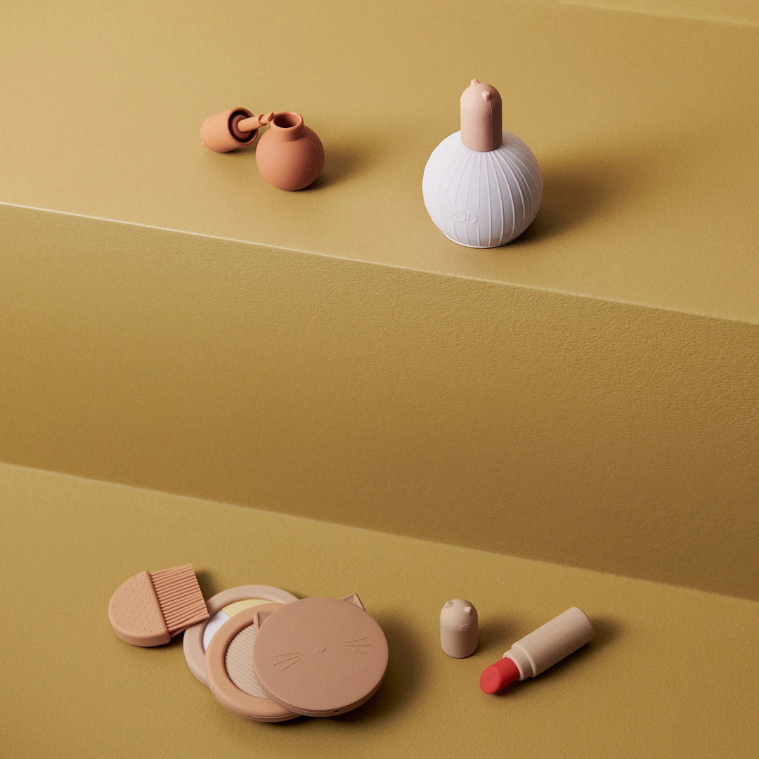 Elisabeth Makeup Set – Rose Multi Mix by Liewood. This gorgeous toy makeup play set is perfect for little ones who love imaginative play and all things makeup. “Playing makeup” can help your child develop fine and gross motor skills and it also promotes creativity and cognitive development. The Elisabeth Makeup Set includes a brush, powder, eye shadow, perfume, lipstick and nail polish.