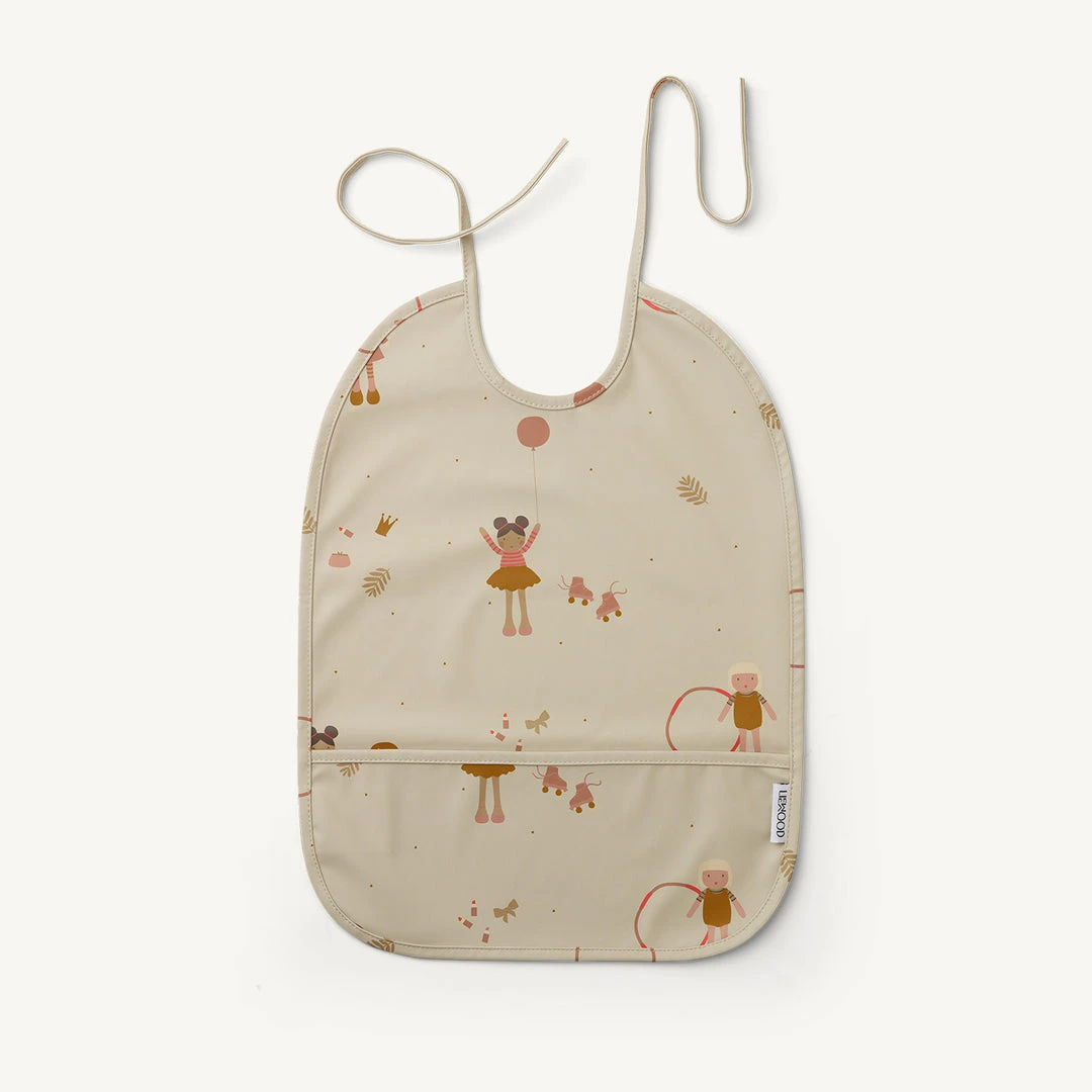 Lai Water repellent Bib for Children – Doll / Sandy Mix by Liewood. Practical bib helping to make mealtimes a little less messy – an essential for your changing bag and available in a range of beautiful new styles.